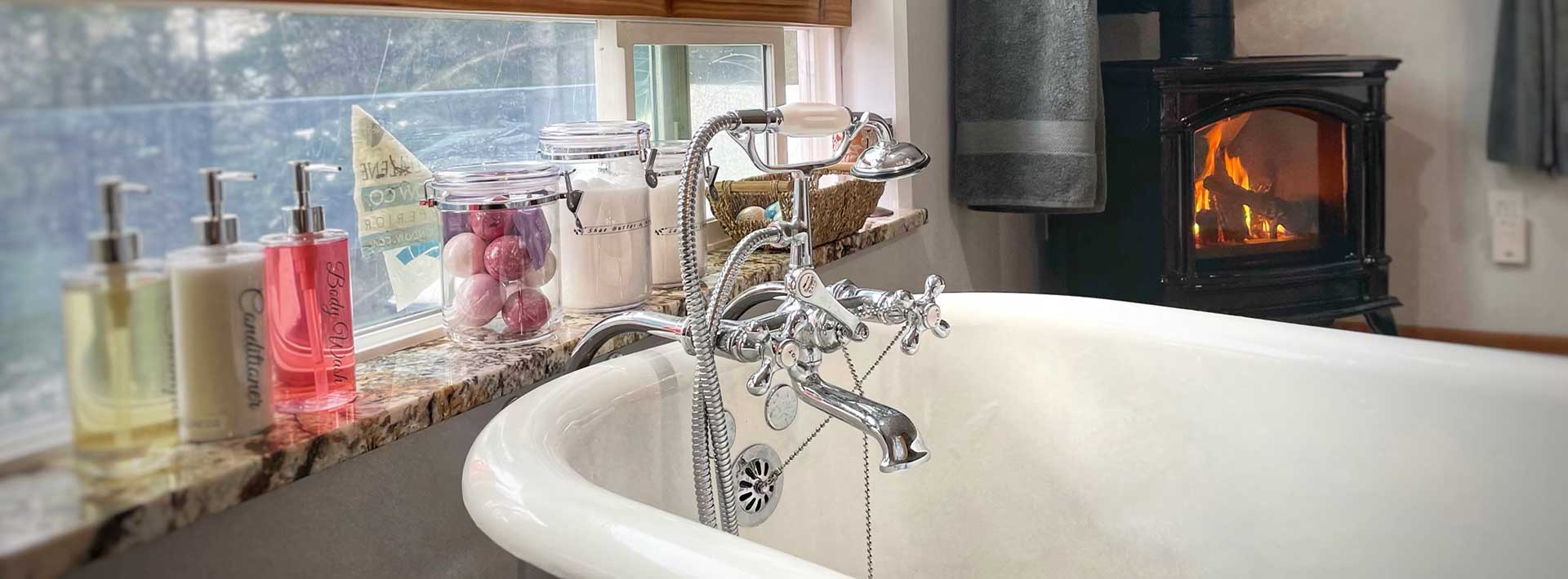 AmAzing FiresiDE BATHING EXPERIENCE WITH SUPPLIES: TOWELS, SAmPOOS, SOAPS & CoNDITONEER |