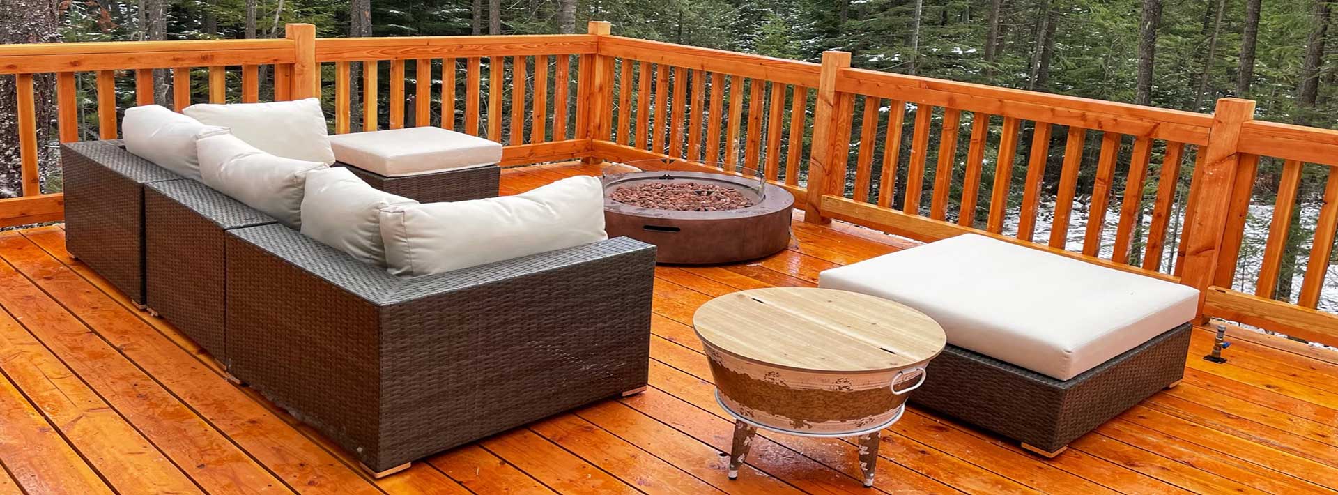 The vacation home features a large second level deck for relasing and entertaing. Enjoy an evening and a spectular view all nestled with in your own private emerald forest. |